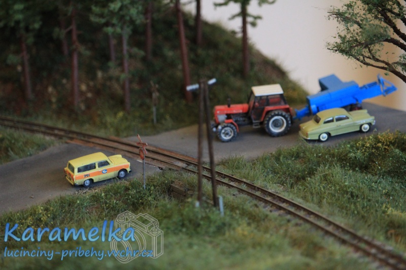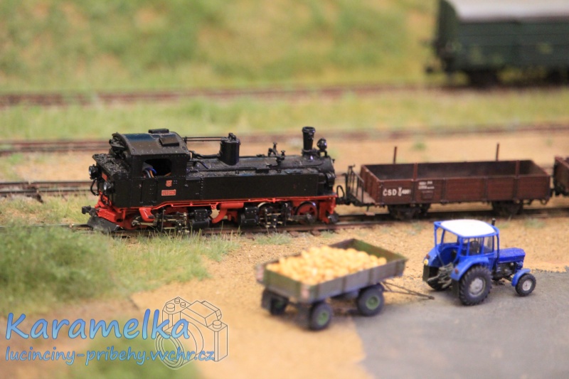 Nejenže pouštěli vláčky, ale ta úžasná propracovanost detailů kolem mě naprosto fascinovala. Moc se mi líbilo, že kolem celé železnice byly židle, na které se děti mohly postavit a díky tomu krásně viděly. Syn většinu času strávil jen na jedné židli. Vybral si místo, ze kterého viděl krásně a neměl potřebu se přesouvat. My jsme se s manželem u něj vystřídali a prošli jsme si místnost celou.