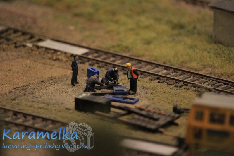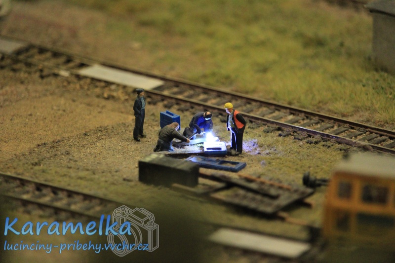 Neuvěřitelně propracované, pohyblivé modelové kolejiště se všemi možnými detaily. Nehýbaly se jen vláčky, ale jezdili auta, autobusy dokonce i blikající hasiči. Hýbali se panáčci (viz dvě fotky pod tímto textem – pán svařuje) a navíc mají i vystavovatelé noční provoz. Zhasnou se světla, ale vlaky svítí, svítí budovy… opravdu fantastický zážitek pro malé i velké 🙂